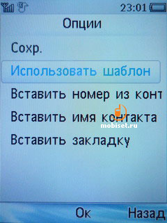 В режиме ожидания за тремя верхними софт-клавишами жестко закреплены следующие действия – левая клавиша отвечает за входящие сообщения, правая – за быстрое меню «Избранное» (будильник, игры, обои и проч.), наконец, центральная – за доступ к меню. При этом стоит отметить некоторую нелогичность меню – центральная клавиша не всегда подтверждает действие, иногда приходится предварительно выбирать необходимый пункт левой софт-клавишей, и уже потом нажимать центральную (например, при выборе адресата для отправки сообщения и т.д.)