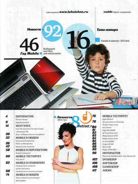 Обзором номера, видимо, считается тест Apple iPhone 4, занявший целые 2 полосы. Приятно, что Mobile перестал публиковать переписанные пресс-релизы и предлагает к прочтению объективные и достаточно подробные обзоры устройств с вынесенными в отдельный абзац выводами и плюсами / минусами. Всё, за что мы в свое время хвалили Mobi и «Мобильные новости», постепенно начинает появляться в Mobile Digital, что не может не радовать.