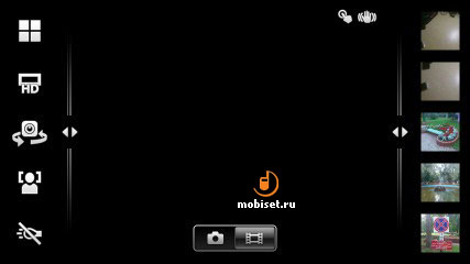 Для переключения между фото- и видеосъемкой предусмотрено две иконки внизу экрана. Видеозапись осуществляется в MPEG4, 30 кадров в секунду, запись звука ведется в стереорежиме.