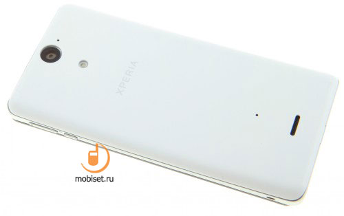 Задняя поверхность вогнутая, как это уже было ранее и встречалось в других устройствах Sony не один раз. Оформление скромное, никаких излишеств: вверху объектив камеры и вспышка, внизу отверстие динамика. Также тут находятся два микрофона.