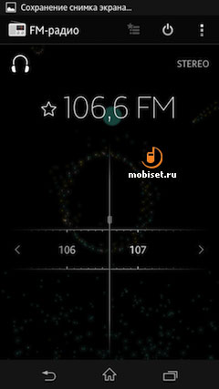 В смартфоне есть радиоприёмник, который обладает функцией автоматического поиска станций, можно переключаться и в ручной режим поиска. Также в памяти телефона хранятся несколько десятков частот. Между любимыми станциями вы можете легко переключаться, нажимая на небольшие значки, которые будут перемещать между волнами. Во время прослушивания радио можно записать отрывок песни, определить информацию о треке с помощью Track ID и разместить информацию в Facebook.