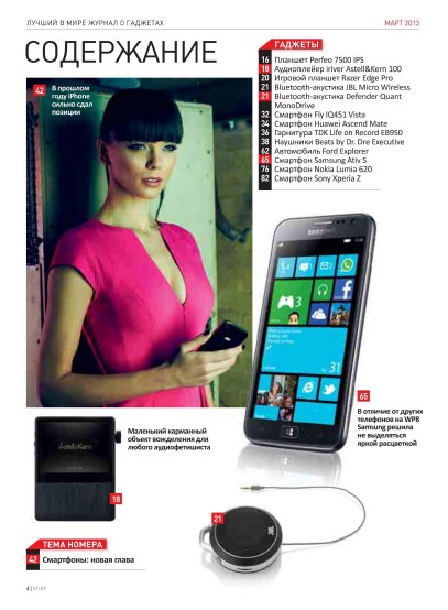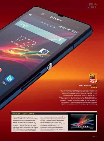 Целая полоса отведена под рекламную статью модели LG Optimus G под заглавием «Секретная формула». Каждое слово здесь выдаёт не автора-аналитика, а копирайтера, который уже не знает, какими эпитетами обласкать флагманское устройство. На мой взгляд маркетолога подобные материалы «на правах рекламы» допустимо применять в маркетинге мелкими локальными брендами, но никак не такими гигантами, как LG. Идея, безусловно, имеет право на существование, но, пожалуйста, без слов «волшебный», «потрясающий», «роскошный».