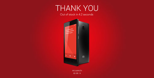 На сей раз жителям Индии было предложено приобрести доступный смартфон Redmi 1S. И они воспользовались этой возможностью, всего за 4,2 секунды раскупив всю партию из 40 тысяч гаджетов.